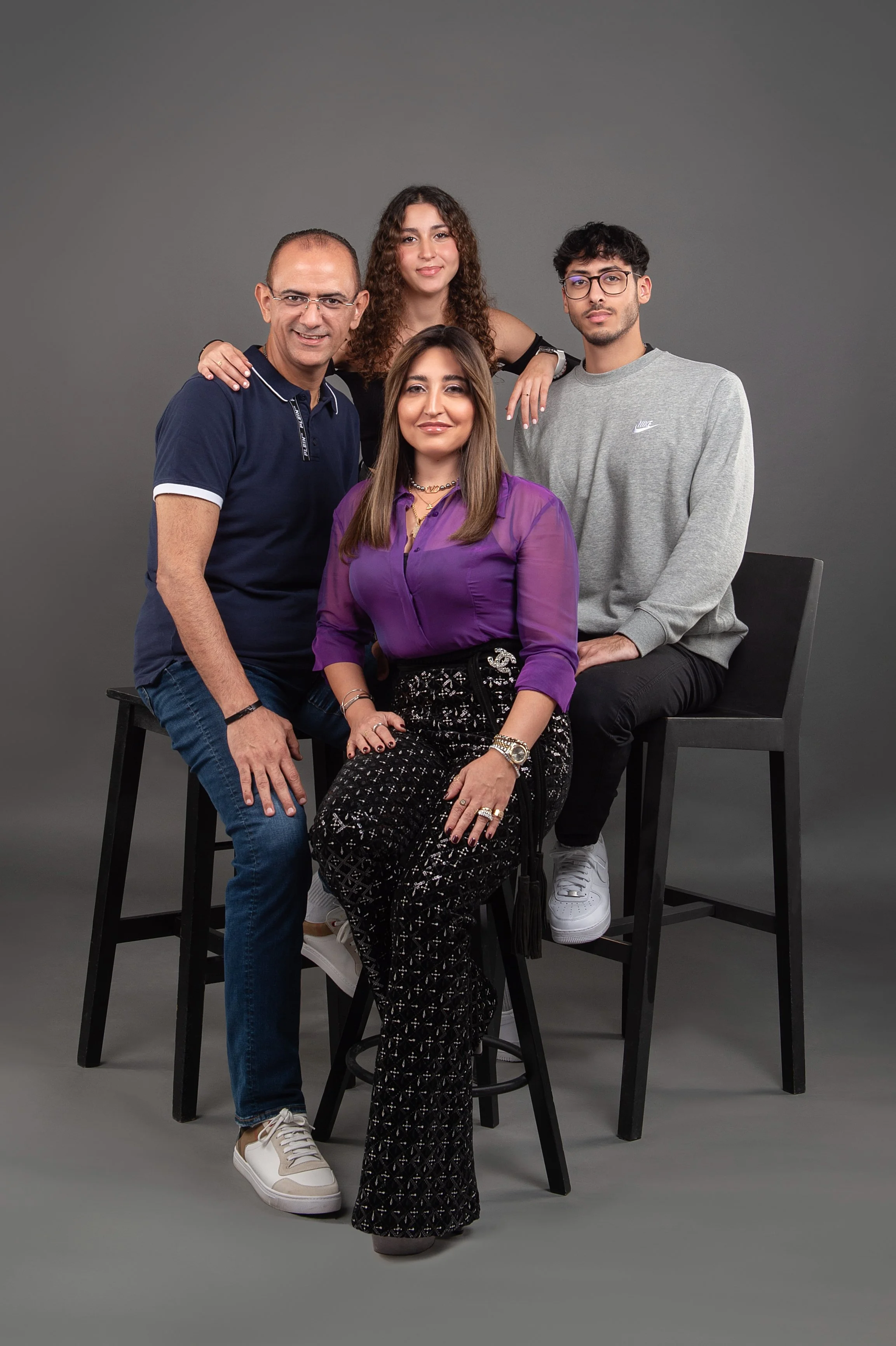 In our studio, we provide a variety of backdrops and lighting options to ensure high-quality images that reflect your family's personality and style. Whether you prefer classic poses or more playful and candid moments, our skilled photographers will work with you to create a collection of images that truly represent your family's essence.